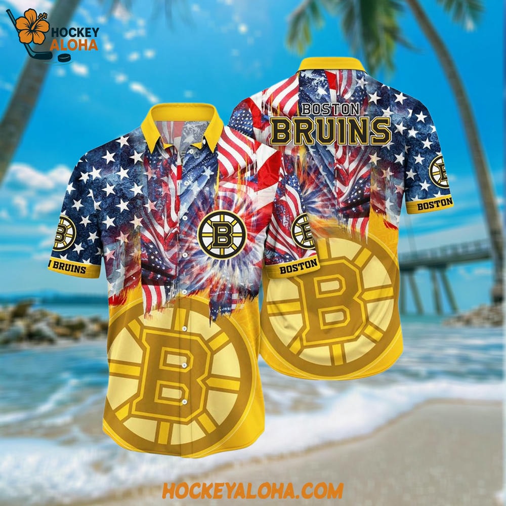Boston Bruins Hawaiian Shirt With American Independence Day Pattern Summer Hawaiian Shirt – the ultimate Hawaiian shirt for every true NHL fan! Whether you’re a die-hard supporter of your favorite NHL team or just a passionate enthusiast of the game, this shirt brings the perfect blend of team spirit and island vibes in a vibrant, tropical design. Specifically crafted for fans of NHL teams, this piece is not just another shirt – it’s a statement, a bold declaration of your love for the game, and a tribute to the beauty of the Hawaiian spirit.