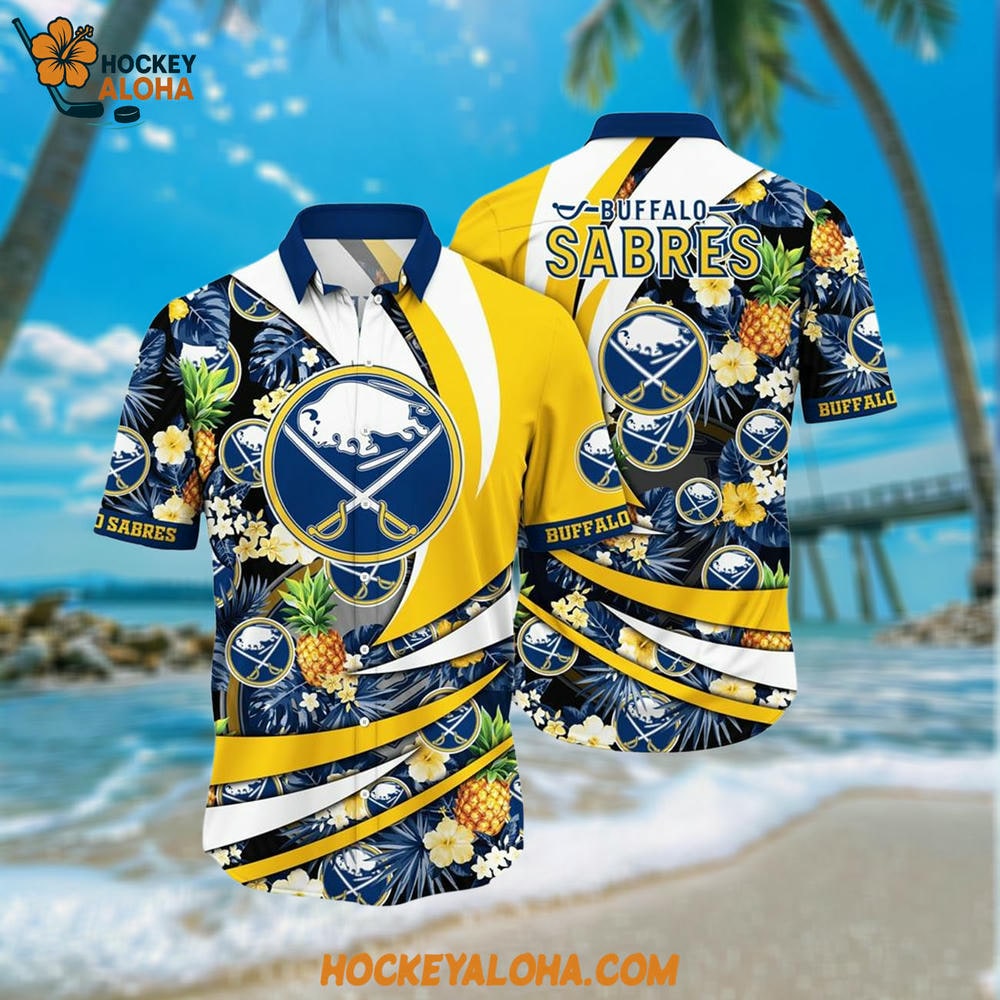 Buffalo Sabres Hawaiian Shirt With Tropical Pineapple Summer Hawaiian Shirt – the ultimate Hawaiian shirt for every true NHL fan! Whether you’re a die-hard supporter of your favorite NHL team or just a passionate enthusiast of the game, this shirt brings the perfect blend of team spirit and island vibes in a vibrant, tropical design. Specifically crafted for fans of NHL teams, this piece is not just another shirt – it’s a statement, a bold declaration of your love for the game, and a tribute to the beauty of the Hawaiian spirit.