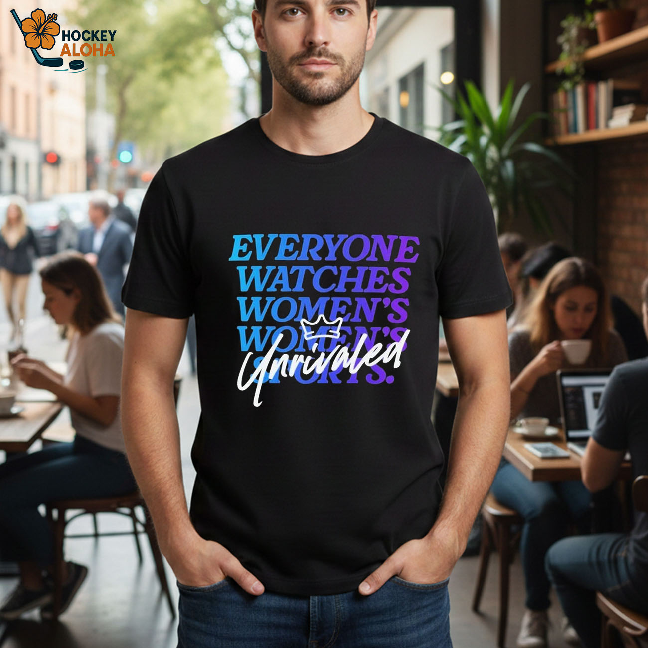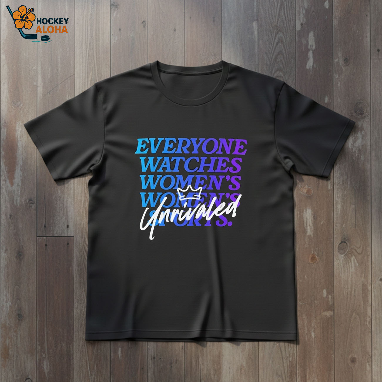 The highlight of the Everyone Watches Womens Sports Unrivaled T-shirts lies in its clean, high-definition design. Printed with sharp detail and vibrant color, the artwork stands out while remaining easy to wear and style. It’s the kind of piece that naturally draws attention and earns compliments without being over the top.