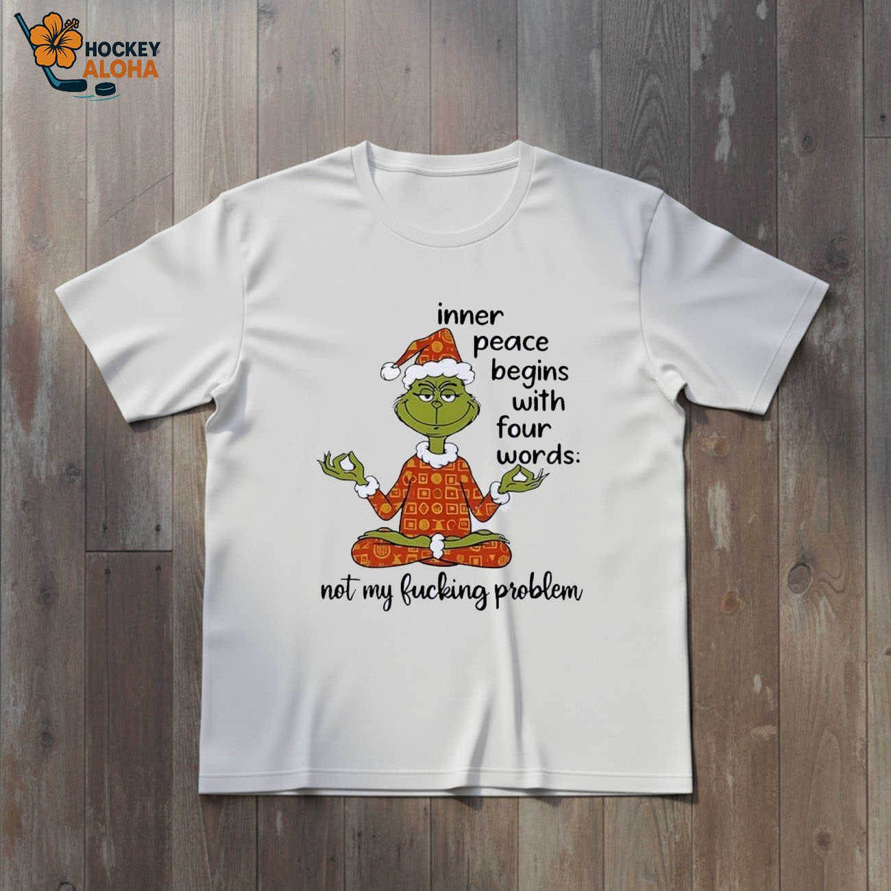 Made from premium materials, the Grinch Inner Peace Begins Four Words Not My Fcking Problem Christmas Shirt offers a lightweight, breathable feel with a soft touch that keeps you comfortable all day long. Its relaxed fit and durable construction make it ideal for regular wear, giving you both freedom of movement and long-lasting quality.