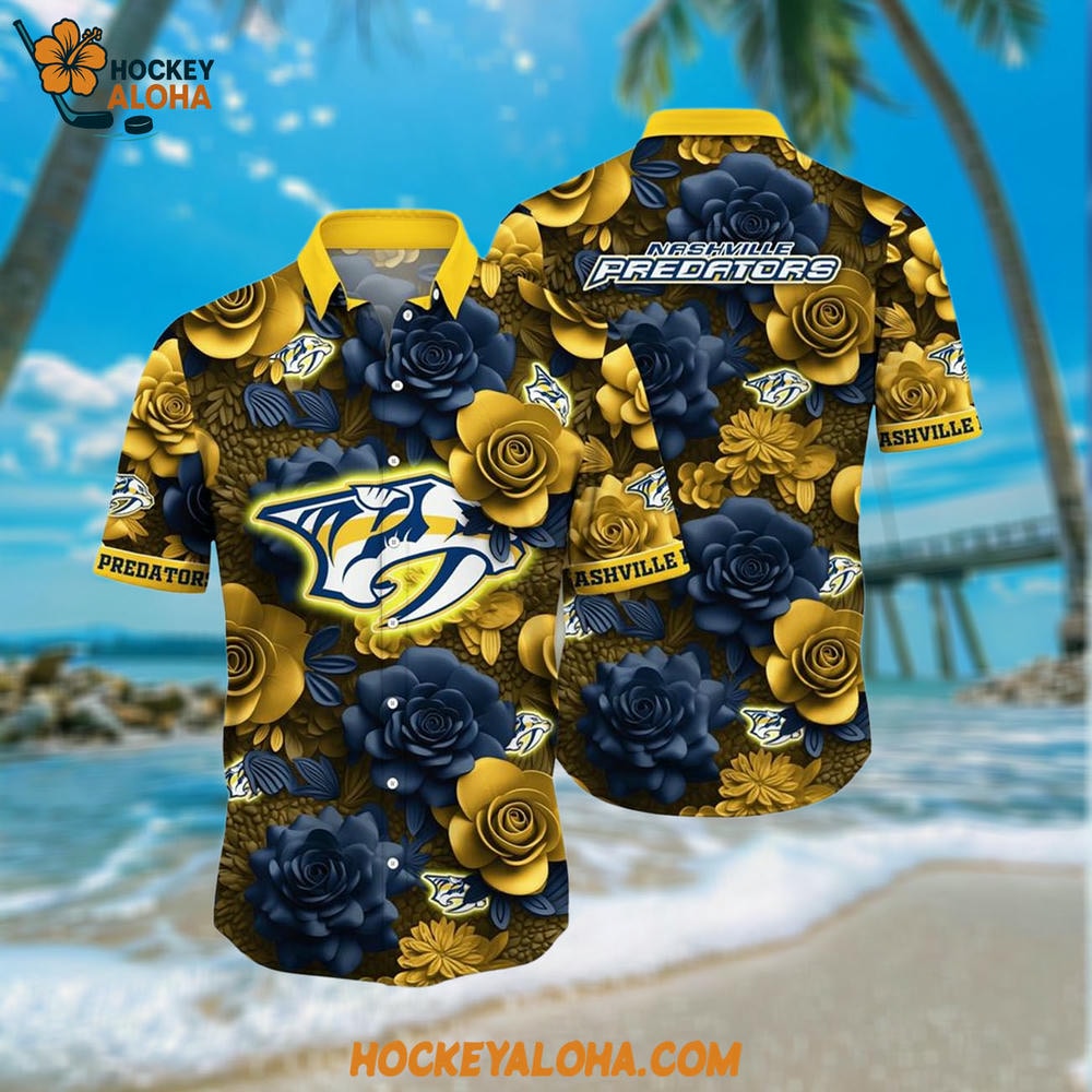 Nashville Predators Hawaiian Shirt Tropical Rose Pattern Summer Hawaiian Shirt – the ultimate Hawaiian shirt for every true NHL fan! Whether you’re a die-hard supporter of your favorite NHL team or just a passionate enthusiast of the game, this shirt brings the perfect blend of team spirit and island vibes in a vibrant, tropical design. Specifically crafted for fans of NHL teams, this piece is not just another shirt – it’s a statement, a bold declaration of your love for the game, and a tribute to the beauty of the Hawaiian spirit.