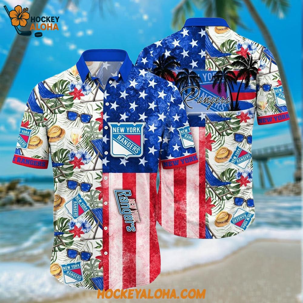 New York Rangers Hawaiian Shirt Tropical Hat And Glasses Pattern Summer Hawaiian Shirt – the ultimate Hawaiian shirt for every true NHL fan! Whether you’re a die-hard supporter of your favorite NHL team or just a passionate enthusiast of the game, this shirt brings the perfect blend of team spirit and island vibes in a vibrant, tropical design. Specifically crafted for fans of NHL teams, this piece is not just another shirt – it’s a statement, a bold declaration of your love for the game, and a tribute to the beauty of the Hawaiian spirit.
