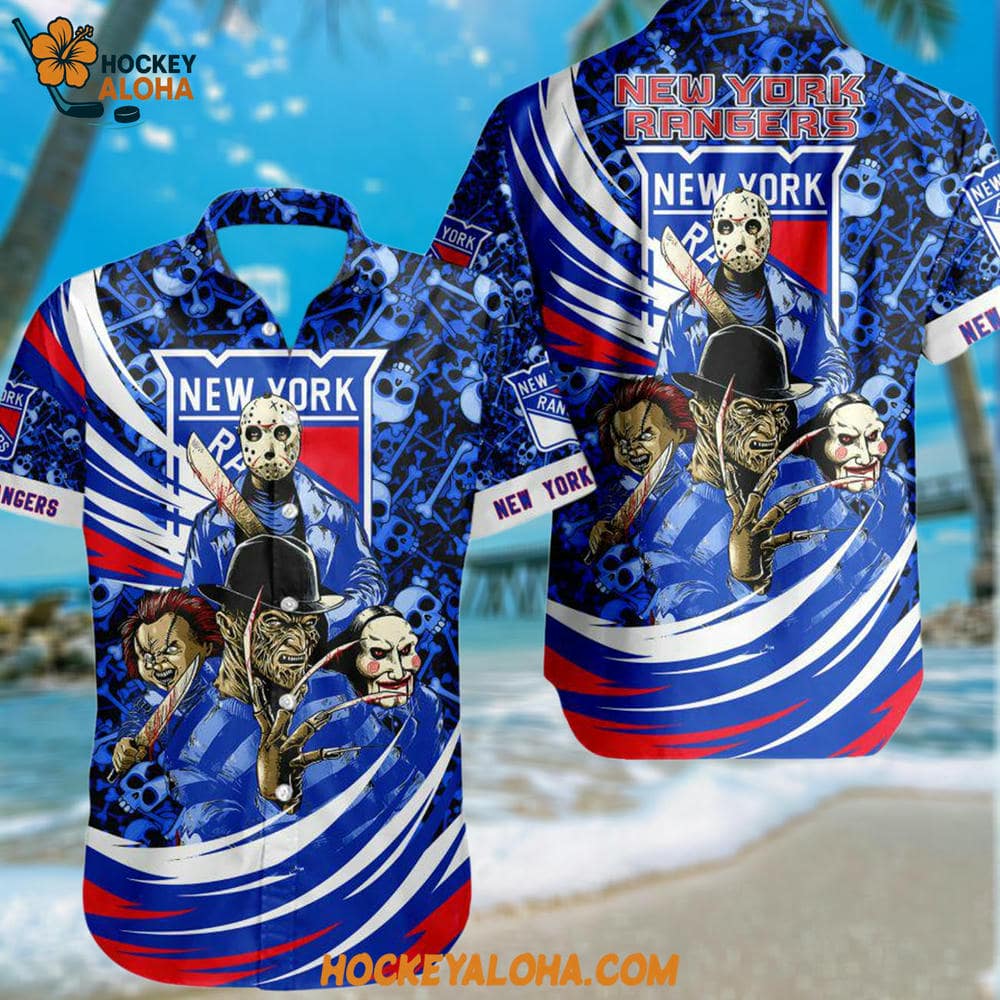 Take your NHL fan wardrobe to the next level with the New York Rangers Special Movies Character Halloween Design Hawaiian Button Shirt. Whether you’re showing off your team pride at a beach party, sporting it during a tailgate, or simply lounging on a lazy summer day, this shirt is your new go-to piece for any occasion. Limited stock available – don’t miss out on owning this one-of-a-kind Hawaiian shirt!