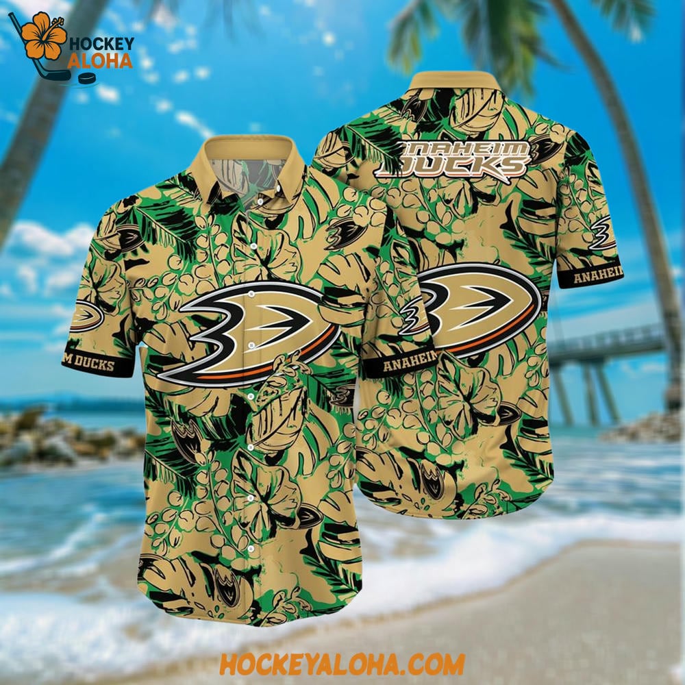 Take your NHL fan wardrobe to the next level with the NHL Anaheim Ducks Hawaiian Shirt Tropical Leaf Pattern Summer Hawaiian Shirt. Whether you’re showing off your team pride at a beach party, sporting it during a tailgate, or simply lounging on a lazy summer day, this shirt is your new go-to piece for any occasion. Limited stock available – don’t miss out on owning this one-of-a-kind Hawaiian shirt!