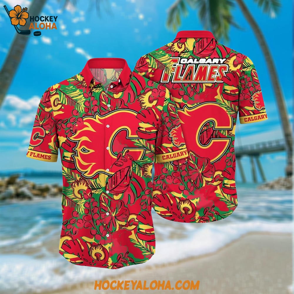 NHL Calgary Flames Hawaiian Shirt Tropical Leaf Pattern Summer Hawaiian Shirt – the ultimate Hawaiian shirt for every true NHL fan! Whether you’re a die-hard supporter of your favorite NHL team or just a passionate enthusiast of the game, this shirt brings the perfect blend of team spirit and island vibes in a vibrant, tropical design. Specifically crafted for fans of NHL teams, this piece is not just another shirt – it’s a statement, a bold declaration of your love for the game, and a tribute to the beauty of the Hawaiian spirit.