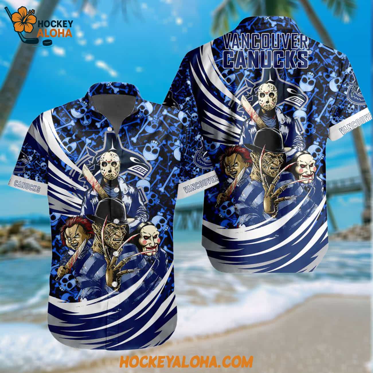 Nhl Vancouver Canucks Special Movies Character Halloween Design Hawaiian Button Shirt – the ultimate Hawaiian shirt for every true NHL fan! Whether you’re a die-hard supporter of your favorite NHL team or just a passionate enthusiast of the game, this shirt brings the perfect blend of team spirit and island vibes in a vibrant, tropical design. Specifically crafted for fans of NHL teams, this piece is not just another shirt – it’s a statement, a bold declaration of your love for the game, and a tribute to the beauty of the Hawaiian spirit.
