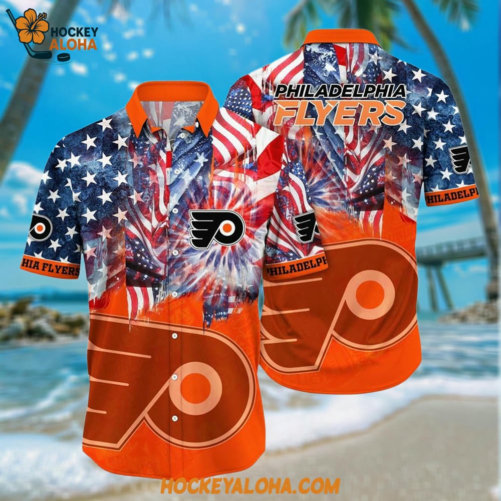 Philadelphia Flyers Hawaiian Shirt With American Independence Day Pattern Summer Hawaiian Shirt – the ultimate Hawaiian shirt for every true NHL fan! Whether you’re a die-hard supporter of your favorite NHL team or just a passionate enthusiast of the game, this shirt brings the perfect blend of team spirit and island vibes in a vibrant, tropical design. Specifically crafted for fans of NHL teams, this piece is not just another shirt – it’s a statement, a bold declaration of your love for the game, and a tribute to the beauty of the Hawaiian spirit.